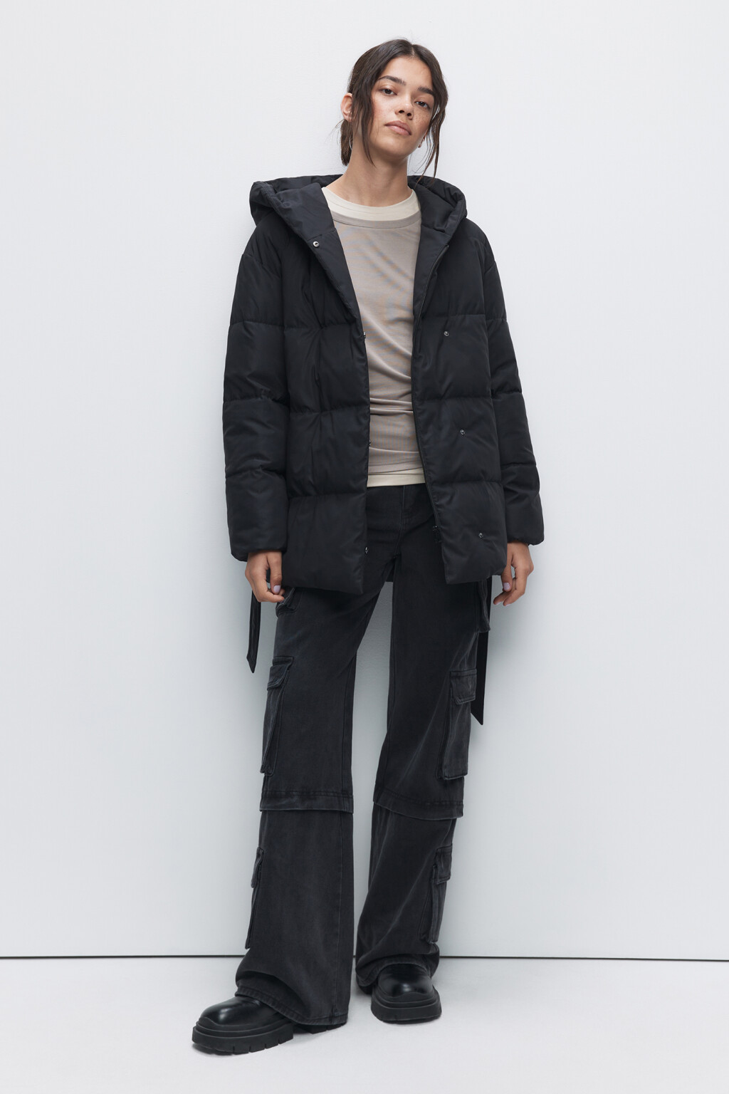 Куртка стеганая утепленная с капюшоном и поясом 2341067112, цвет