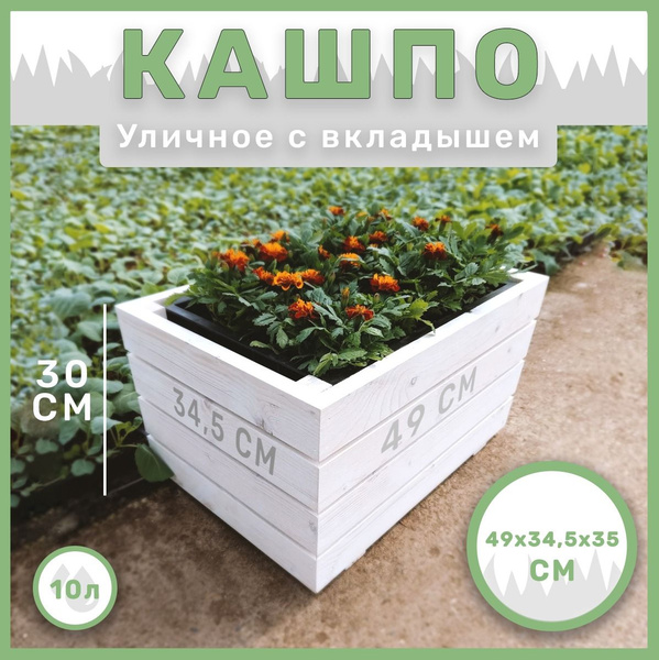 Wooden Garden Кашпо, белый, 30 см х 35 см х 49 см, 50 л, 1 шт