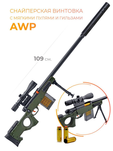 Игрушечное оружие винтовка снайперская AWP с мягкими пулями 109 см