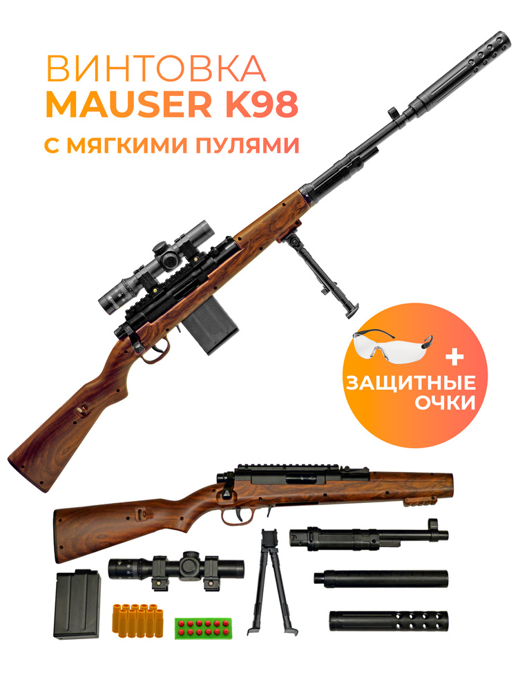 Оружие игрушечное, снайперская винтовка Маузер, с мягкими пулями и