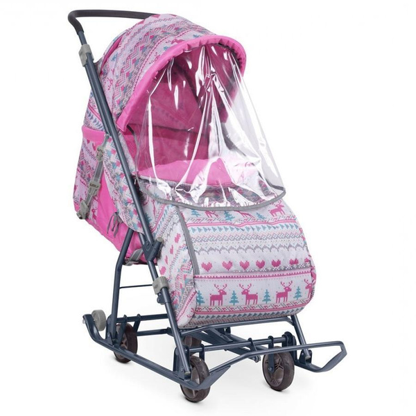 Санки-коляска Nika Умка У3-1/3 Вязаный розовый