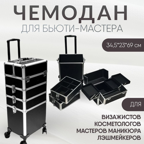 Чемодан на колесах для косметики, черный матовый
